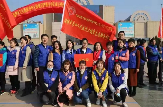 为深入贯彻落实习近平新时代中国特色社会主义思想和党的十九大精神,积极培育和践行社会主义核心价值观,进一步弘扬雷锋精神和“奉献、友爱、互助、进步”的志愿服务精神,推动全市卫生健康系统新时代文明实践志愿服务活动深入开展,淄博市第四人民医院积极响应市卫生健康委、市文明办、团市委的号召,于2019年3月7日上午组织15名志愿者参加淄博市卫生健康系统大健康志愿服务分队成立暨学雷锋志愿服务月启动仪式。