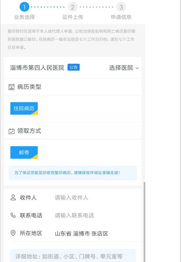 为贯彻落实山东省卫生健康委“互联网+医疗健康”便民惠民百日行动、“一次办好”相关要求,淄博市第四人民医院近日推出了“微信申请复印病历”业务。您只需动动手指,剩下的事情交给我们办,快递就会送到您家门口,怎么样?方便吧!那如何申请呢?请您往下看……