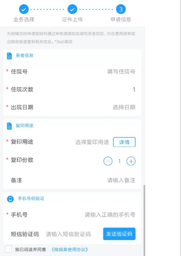 住院病历复印件是患者办理商业保险报销、异地报销、转院、复诊等方面手续必须具备的材料。通常情况下,在患者出院的7个工作日后,住院病历才能审核、完善、归档,然后需要患者本人或者委托亲属,带身份证件到医院复印并备案盖章,这让很多来自外地或远郊地区的患者感到不便。