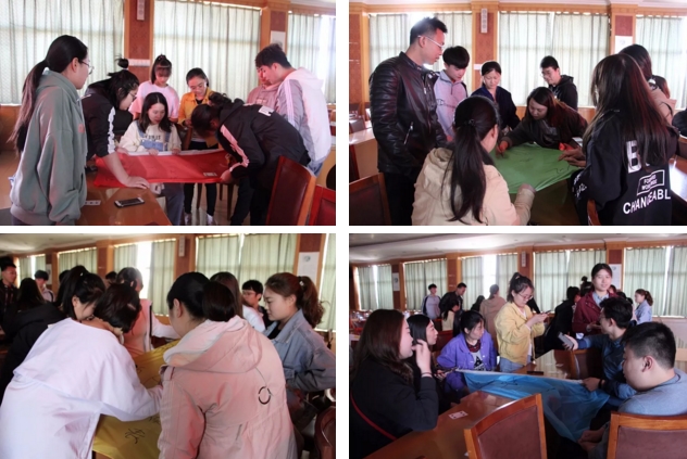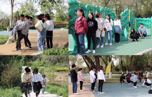 素质拓展训练陆续展开。首先进行团队建设,四队人马在各自队长的带领下确定了自己的队名、队歌和队徽,分别为“黑桃队”、“锦鲤队”、“风之彩队”、“飞越队”。在美丽的青年公园,开启了各项游戏的比拼,团员们围绕着“汉诺塔”、“地雷阵”、“你比我猜”、“钻电网”等系列活动进行了生动而有趣的拓展。