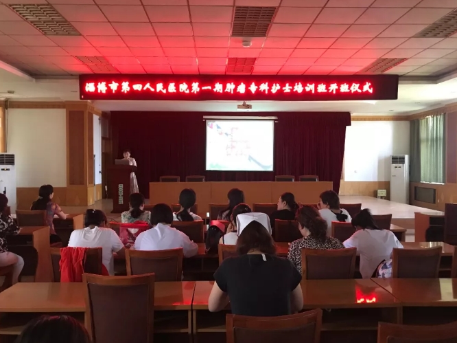 2019年5月31日下午,淄博市第四人民医院护理部在五楼会议室举行院内第一期肿瘤专科护士培训班开班仪式。会议由护理部副主任郭杰主持,各科护士长、肿瘤科护理骨干共计70余人参加了会议。
