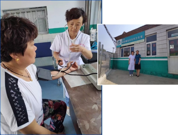 骨科护士长岳淑红到博山区源泉镇岳庄东村卫生室开展义诊和随访工作,走访贫困户,掌握村民健康需求,倡导健康生活方式,解决存在问题。