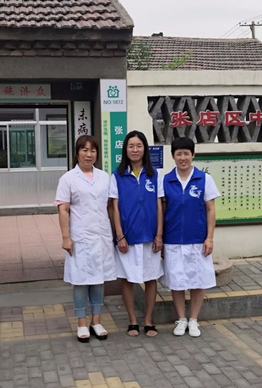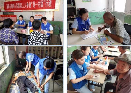 重症医学科副护士长卢宁、护士张莹到张店区南定镇小董村为村民量血压,讲解健康科普常识。