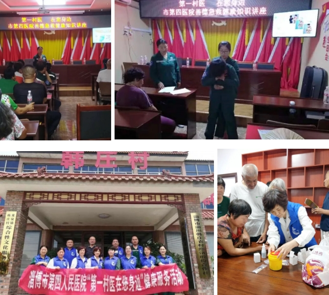 急诊科主任金传峰、副护士长刘健、护士张璞、王银鹏、王倩倩、齐雪,周强,感染四科护士长康岩、副主任医师毕德军、主治医师褚慧彬、护士刘晓霞、张金环到淄川区龙泉镇韩庄村开展义诊志愿服务活动。在现场为村民们进行了急救知识培训,进一步丰富了居民的急救知识,同时提高了居民们面对紧急情况的应变能力,增强了自身应对自然灾害和突发事件时的自救互救意识。