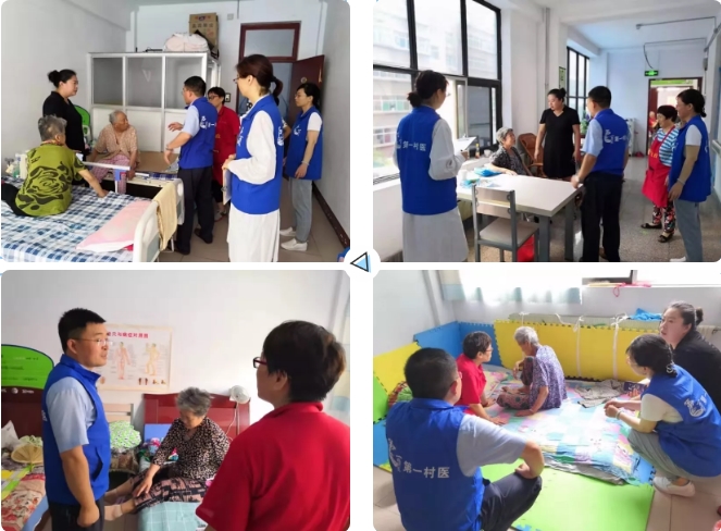 7月20日周六,由中西医结合感染科主任李刚、护士长刘欣、副主任于水玲、医院发展部副主任刘萍组成的淄博市第四人民医院“第一村医在您身边”医护专家团队放弃休息时间,一大早来到了位于和平社区的香叶养老院,在陈霞院长的带领下,逐个房间看望老人,为老人量血压,询问老人的饮食、睡眠,身体情况、吃药情况等,针对老人存在的不适症状,专家们逐一答疑解惑,耐心地做心理疏导,并给出指导性治疗建议。
