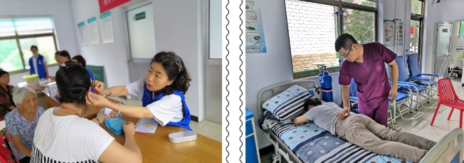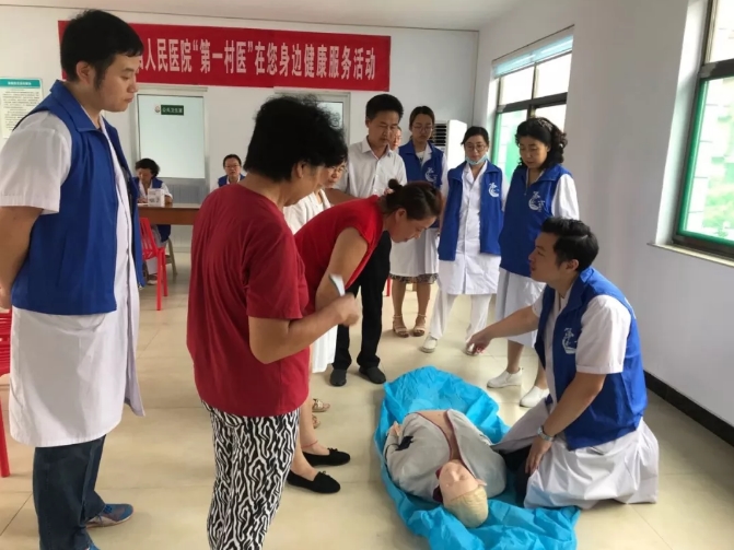 专家们一到现场就迅速备好物品,为早早等候在村卫生室的村民们进行量血压、测血糖检查及心肺听诊、中医把脉、健康咨询、心肺复苏急救培训等。