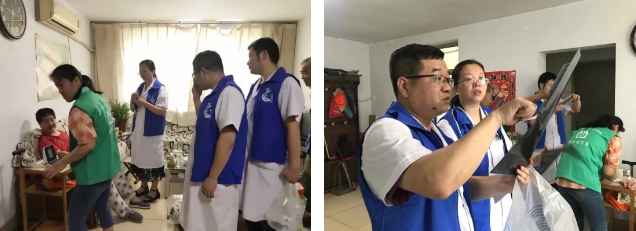 在村医王静大夫的带领下,内科副主任袁芳、骨科副主任季绍振来到一户罹患脑血管疾病多年的村民家中给予体格检查并给予指导性治疗建议。