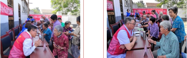 一到常旺村党群服务中心,党员志愿者们迅速摆放好物品分别进行量血压、测血糖、进行健康科普讲座、心肺复苏急救培训等。现场气氛温馨融洽,义诊工作进行的有条不紊。