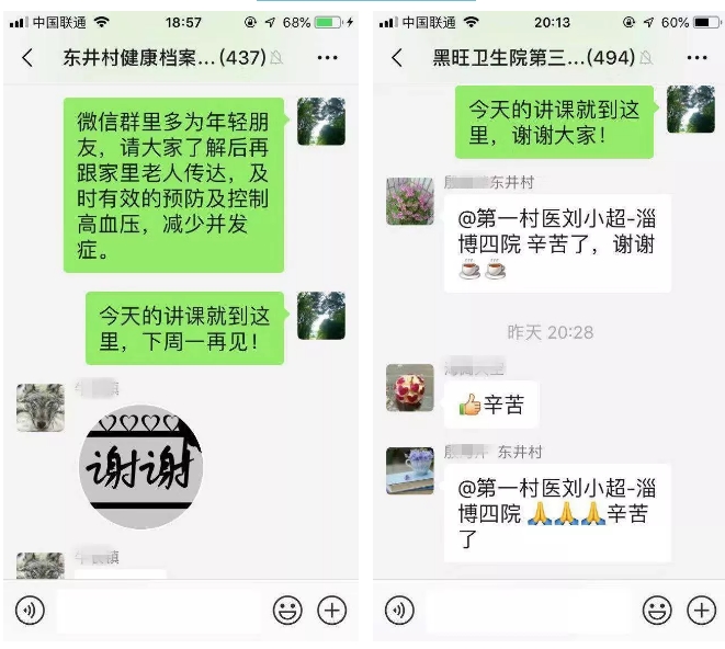 “工作中我也发现,很多慢性病其实已经年轻化,找上了中青年人,但村里的年轻人平时都在外工作,白天很难找上他们,我就想了个更好的办法。”刘小超鉴于村里年轻人大多会用手机的特点,开始与村委合作,进行宣传,他加入村、卫生院微信群,在微信群中进行宣传互动以及健康讲课,针对不常在村的年轻人实现线下线上同步宣传。