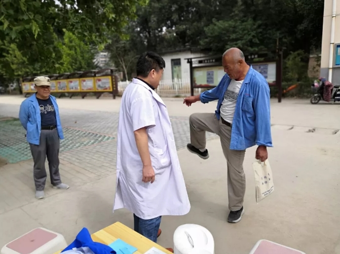 颈肩腰腿疼科主任王毅为罹患腰腿疼疾病折磨的30多位居民仔细体检做出诊断并给予指导性治疗建议。