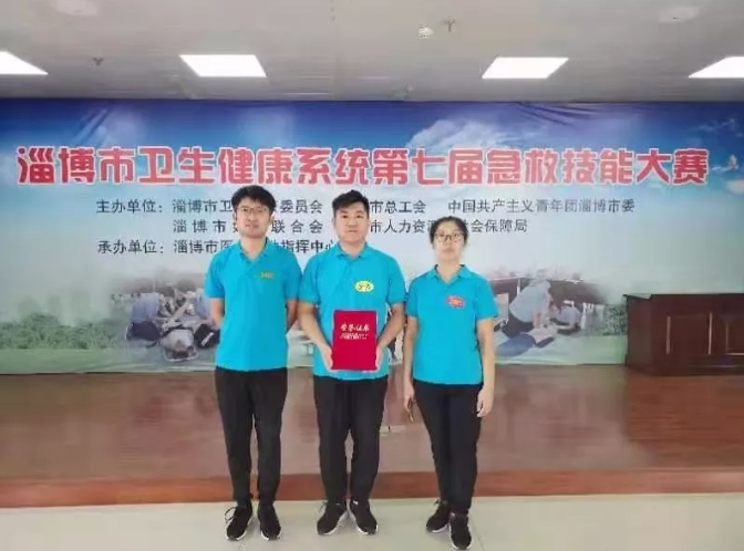 9月21日,淄博市卫生健康系统第七届急救技能大赛圆满结束。经过激烈角逐,由孙振杰、车秉骏、刘健三名选手组成的淄博市第四人民医院代表队荣获团体二等奖,其中孙振杰获得全市综合成绩第一名、多发性创伤止血包扎单项第一名的优异成绩。