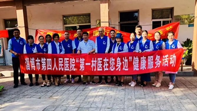 9月21日下午,在新中国成立70周年来临之际,由淄博市第四人民医院肿瘤科、感染科、颈肩腰腿疼科、重症医学科、西药房、设备保障科等科室组成的医护专家团,走进四宝山街道办北马庄村卫生室,为社区居民进行肿瘤早诊早治、感染性疾病防治、腰腿疼疾病诊治等健康义诊服务活动,这也是2019年“服务百姓健康行动”大型义诊活动之一。