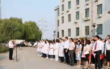 院党总支委员、组织人事科科长傅伟伟同志在国旗下讲话。她指出,70年来,中国共产党团结带领全国人民取得了举世瞩目的辉煌成就。淄博市第四人民医院多年来深入贯彻落实党中央重大决策部署,以全心全意为人民健康服务作为工作的出发点、落脚点,不断满足和提升人民群众健康需求的获得感和幸福感。面对新形势、新机遇,全院干部职工将紧紧团结在医院党政领导班子周围,团结一心,开拓进取,切实把“不忘初心、牢记使命”主题教育成果转化为发展医院的精神力量,把爱国主义精神转化为振兴医院的实际行动,为建设有创新、有活力、有内涵、有关爱、有人文情怀的现代化医院而不懈奋斗。