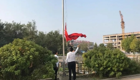 金秋九月,万里晴空。为庆祝新中国成立70周年,缅怀革命先烈,不断加强爱国主义教育,增强医务人员的民族自豪感和集体荣誉感,深入推进“不忘初心、牢记使命”主题教育,9月30日早上8时,淄博市第四人民医院举行迎国庆升旗仪式。院党总支成员、职能科室职工、临床科室代表、共青团员100余人参加了仪式。仪式由院办公室主任、团总支书记王新同志主持。