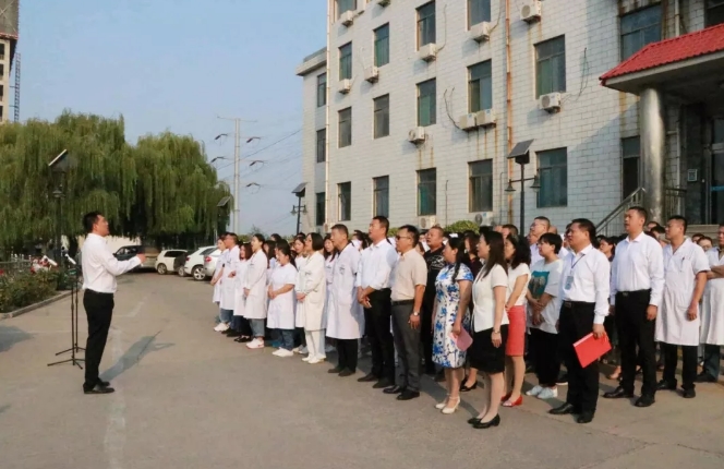 全体人员齐唱《没有共产党就没有新中国》,嘹亮的歌声激励着全院干部职工时刻不忘初心、牢记使命、勇于担当、砥砺前行,努力为人民群众提供更高水平、更加优质的服务,为全市人民群众的身体健康保驾护航。