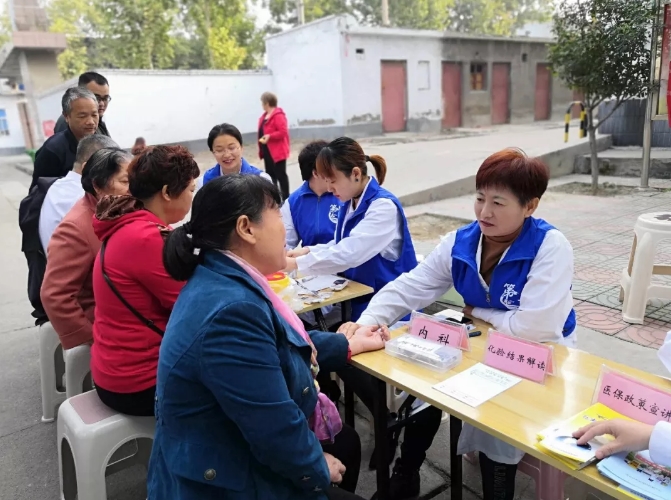 来自公共卫生科主管护师王慧、临床药学科主管药师王琴、葛云、感染一科主管护师李丽、检验科主管技师王明霞、杨丽等分别从疾病预防、医保政策、药物使用常识、化验结果临床意义等方面,对村民进行健康知识宣讲。