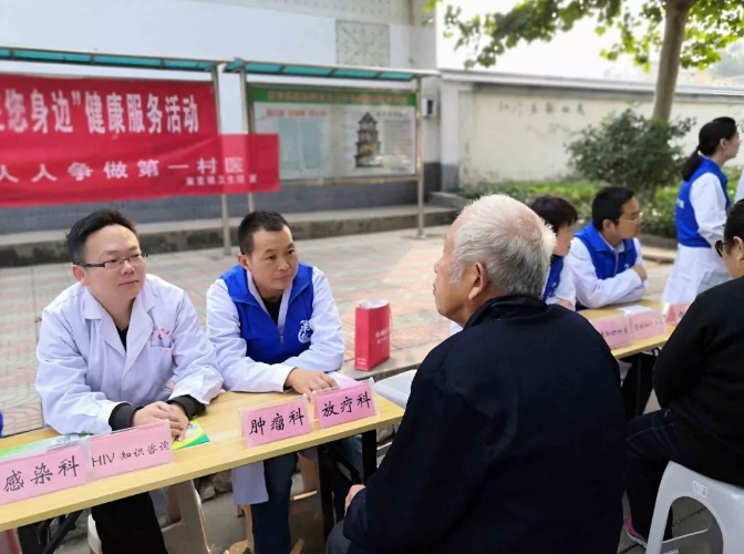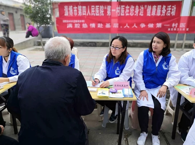 在这阳光明媚,秋高气爽的金色十月里,为更好地促进医院优质医疗资源向基层下沉,扎实推进健康扶贫工作的落实,10月22日一大早,淄博市第四人民医院由肿瘤科、感染科、内科、中医科、医院标建办、放疗科、临床药学科、公共卫生科、检验科等科室组成的医护药技专家团,积极响应市卫健委“人人争当第一村医”活动号召,走进张店区南定镇漫泗河村,为居民进行测血糖、量血压、肿瘤早诊早治、心脑血管疾病防治、健康知识指导、心肺复苏急救技术培训等健康义诊服务活动。