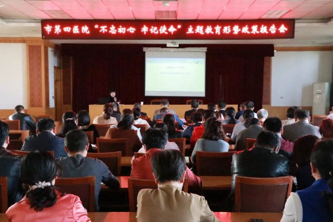 为广泛深入开展形势政策教育,进一步提高党员干部政策理论水平,按照医院党总支“不忘初心、牢记使命”主题教育工作安排,10月31日下午,淄博市第四人民医院举办形势政策教育报告会。会议由党总支书记路慎国同志主持,全体党员、中层干部、入党积极分子100余人参加报告会。