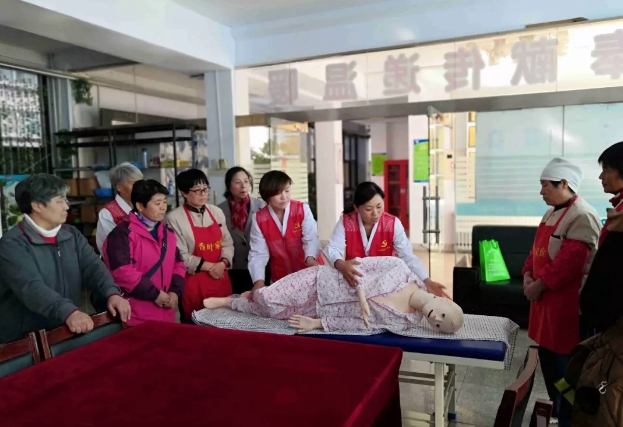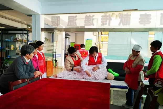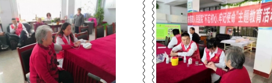 一到活动地点,医护专家团及党员志愿者们就迅速行动起来,一边亲切的与老人交谈,一边为老人测血糖、测血压等;耐心讲解常见病、多发病相关健康知识,帮助老人树立健康的生活理念;对工作人员进行常用护理技术、老年护理、营养知识宣教及风险防控;手把手的传授老年护理技巧。