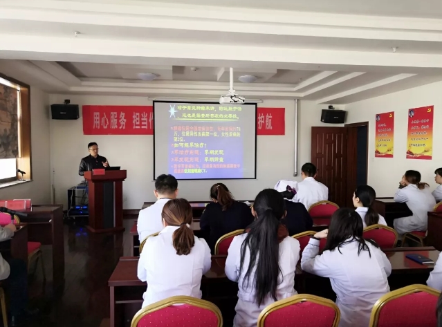 为认真落实“守初心、担使命、找差距、抓落实”总要求,本着“治已病、防未病”的目的,着力提高健康扶贫医疗护理服务质量,让贫困地区和贫困群众获得实惠和便利,进一步提升群众感受度、获得感和满意度,11月13日,在淄博市第四人民医院副院长黄其来带领下,由肿瘤科、重症医学科、肿瘤血管介入科、放射科、彩超科等科室医疗影像专家组成的健康知识宣讲团联合高新区机关医院,为高新区机关医院医技人员及社区卫生服务站工作人员举办了一场以“肿瘤早诊早治”为主题的健康大讲堂活动。