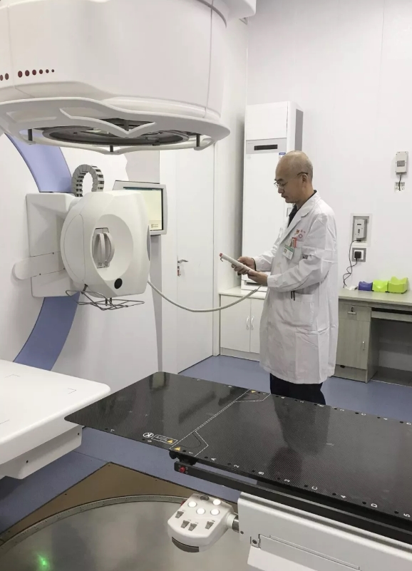 他工作踏实,勇于担当。自参加工作以来,一直奋斗在肿瘤放射治疗的第一线。刚参加工作时,医院科室使用的放射治疗设备是一台老旧的钴60治疗机。有一次,在病人放射治疗时,由于设备故障,放射源没有退回到储源罐内,此时整个治疗室是一个充满了射线的辐射环境,任何人进入都会受到高剂量的辐射照射。若不及时将放射源收回到储源罐内,可能会发生严重的放射事故。这时,他毫不犹豫,立刻找来一根木棒,在没有任何防护措施的情况下,他率先冲进治疗室,用木棒将放射源推回到储源罐内,及时避免了放射事故的发生,也为后续的维修工作提供了保障。