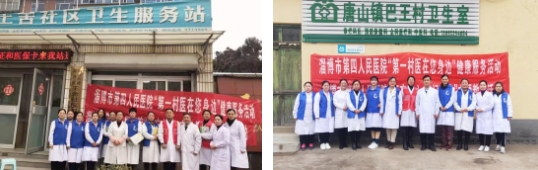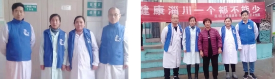 肿瘤六科副主任申海清、肿瘤七科副主任葛星剑、主管护师刘晓坤、刘娟娟及门诊部主管护师司志坤利用周六周日休息时间,分别走进淄川区大马陵村第一卫生室、张庄村第二卫生室进行健康义诊服务活动。