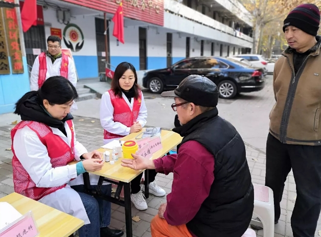 每位专家边交谈、边为社区居民测血糖、测血压,耐心讲解常见病、多发病相关健康知识,引导教育居民树立健康生活理念,更加关注和关爱自身健康。