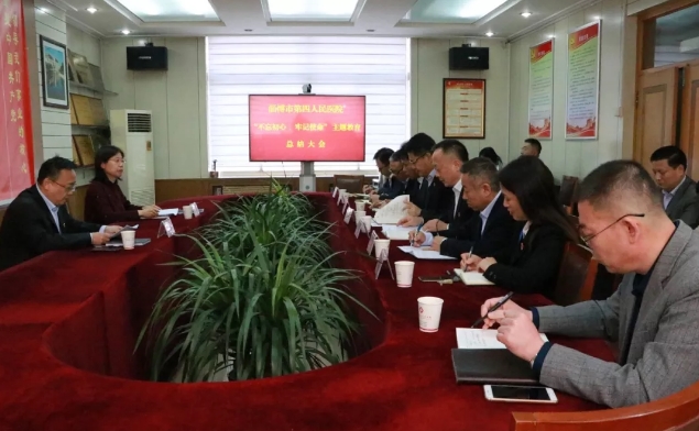 1月19日上午,淄博市第四人民医院召开“不忘初心、牢记使命”主题教育总结大会,淄博市卫生健康委党组“不忘初心、牢记使命”主题教育第四指导组组长、党组成员、副主任韦国、第四指导组成员、市爱委办主任张会英出席。医院领导班子成员、各党支部书记、工作小组成员参加会议,会议由医院党总支副书记、院长毛立亭同志主持。