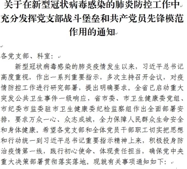 为了打赢这场防控新冠肺炎疫情的攻坚战,确保人民群众生命安全和身体健康,各党支部守初心、担使命,勇带头、做表率,直面危机,迎难而上。