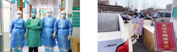 临床一支部、三支部、四支部党员带头做好发热、确诊病人出入院、各项检查转运接送、医院出入口车辆管理、全体人员感染知识培训和体温检测。