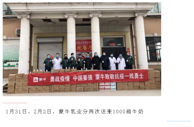 “在关乎人民群众生命安全的关键时刻,你们临危不惧、义无反顾、勇往直前、舍己救人,我们只是尽自己的微薄之力给医务人员提供充足的营养保障,为尽快战胜疫情做出自己的贡献。”企业代表蒙牛山东省重点客户管理部经理王统伟如是说。