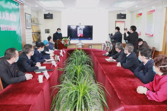 2月12日上午,淄博市传染病医院为两名驰援山东省胸科医院的孙振杰、王炳志举行了简短而特别的视频欢送会。院领导班子成员及相关职能科室人员参加。