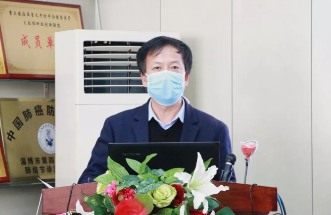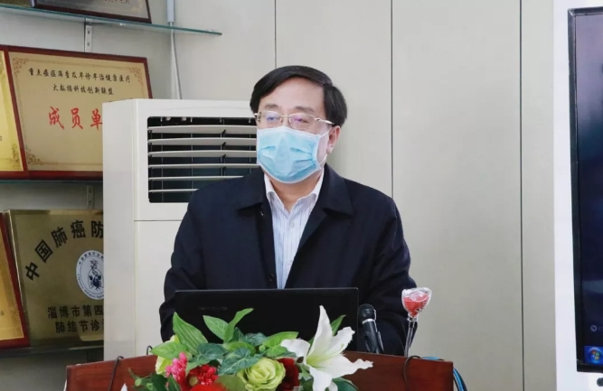 刘观湘副主任致欢送词,今天用特别的方式欢送支援山东省胸科医院新冠肺炎医疗救治团队,这是淄博市至今为止派出的第六批专业医护人员。在新型冠状病毒肺炎疫情防控的关键时刻,重症医学科的医护人员展现出了过硬的政治素质和责任担当,希望医疗队员要发挥崇高的职业精神和共克时艰的使命担当,坚决服从命令和安排,科学高效完成医疗救治任务,同时做好自身防护,为打赢疫情防控阻击战做出积极贡献。