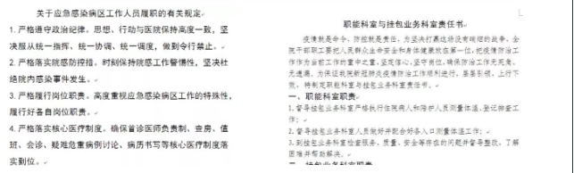 面对疫情防控严峻形势,医院党总支多次召开会议,对纪检工作做出部署,要求把疫情防控作为当前首要的监督,督导落实中央和省市有关通知精神、市卫健委的各项工作安排。制定《关于应急感染病区工作人员履职的有关规定》《职能科室与挂包业务科室责任书》,做到守土有责、守土担责、守土尽责,做到监督不缺位、帮忙不添乱,以实际行动为疫情防控提供纪律保障。