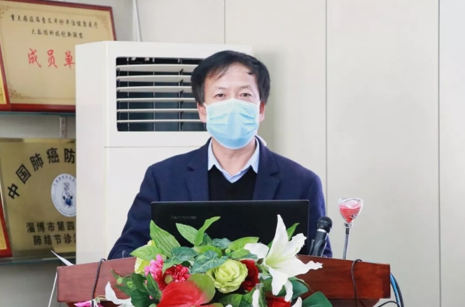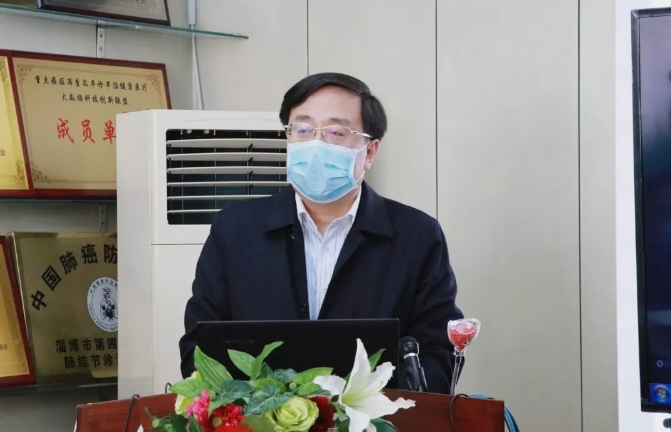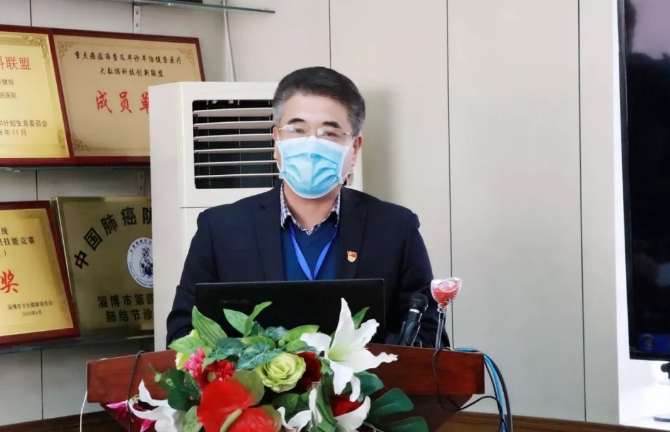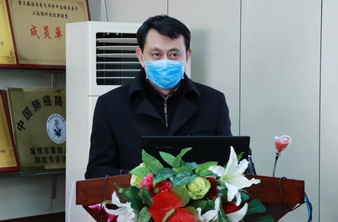刘观湘副主任致欢送词,今天用特别的方式欢送支援山东省胸科医院新冠肺炎医疗救治团队,这是淄博市至今为止派出的第六批专业医护人员。在新型冠状病毒肺炎疫情防控的关键时刻,重症医学科的医护人员展现出了过硬的政治素质和责任担当,希望医疗队员要发挥崇高的职业精神和共克时艰的使命担当,坚决服从命令和安排,科学高效完成医疗救治任务,同时做好自身防护,为打赢疫情防控阻击战做出积极贡献。