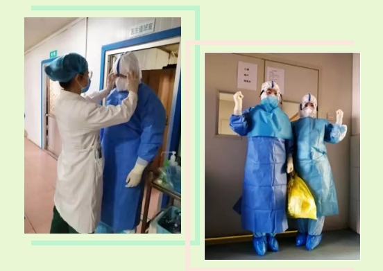 “行,那你去吧,9:30走。”护士长说。“这名患者84岁,一直咳嗽、活动后喘憋,晕车比较厉害...... ,只要做好防护,没事的,别担心。”韩凯医生关心的说道。这时,刘景春主任拿来了医疗废物袋和84消毒液,指导我们如果患者在转运过程中呕吐,每次都要倒上84消毒液并封口,然后双层黄色医疗废物袋分层打包。穿好防护服后,护士长一遍一遍不停叮嘱,反复检查,确保万无一失。