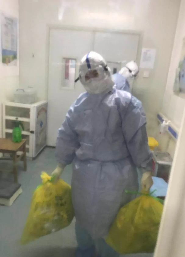 让我感动的是应急感染病区这个团队的相互协作、团结关爱;患者怕传染我们主动戴起口罩和那一声声“姑娘、闺女......”也很感谢最初我申请进入应急感染病区时,肿瘤六科主任、护士长在科室工作繁忙的情况下支持我这个决定,每天微信关注我的身体状况,对我嘘寒问暖。