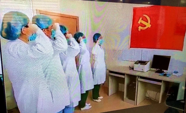 3月2日,来自淄博抗击新冠肺炎疫情一线的10名医护人员成为中国共产党预备党员,这也是淄博市卫生健康委批准接收的首批火线入党人员。淄博市传染病医院高庆娥和她的4名同事在抗击疫情的前沿阵地对着鲜艳的党旗庄严宣誓。