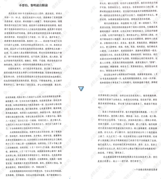 “医务工作很辛苦,每天穿着厚厚的隔离服,一个一个病房的进去,询问病情、测体温、血压、打点滴、送三餐、帮忙打扫卫生,下班以后还要回到和我们病人一样的小单间,有家不能回,儿女不能陪,父母不能顾,爱人不能见……他们也是凡人,付出了这么多,我们又有什么理由不配合治疗加快康复呢?”高庆娥说,她为患者康复出院感到由衷的开心,听到这些暖心的话语,再多辛苦都值了。