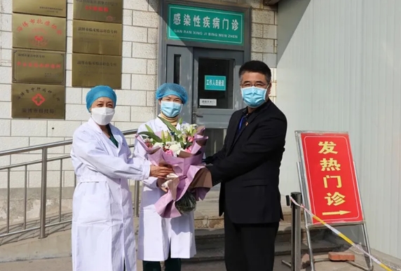 在第110个“三八”国际劳动妇女节来临之际,淄博市传染病医院领导为抗击疫情一线的女医护人员送去节日的问候和美好的祝福。