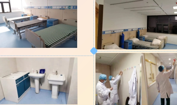 疫情紧迫,为了尽快达到收治患者条件,队员们既是装卸工、搬运工;又是安装工、清洁工,布局、改造、清扫、规整……一切事情都要靠我们的双手来完成。经过日夜不停的奋战,短短30个小时,便将一个杂乱无章的楼层,改造成为具有100张床位,符合收治呼吸道传染病条件的东、西两个感染隔离病区。望着安全有序的工作环境,整洁明亮的病房,整齐舒适的床单元,整装待命的仪器设备,身体的疲惫顿觉消散了很多,大家纷纷打趣:“自己动手丰衣足食的感觉很不错!”28日晚,首批新冠肺炎患者顺利转入。