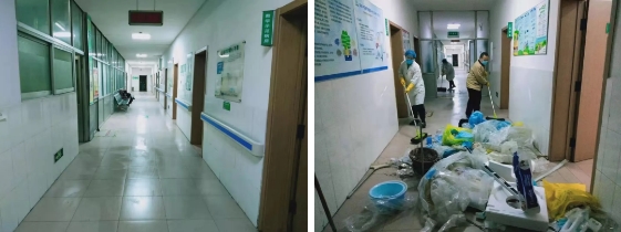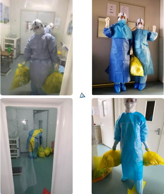 刘景春主任说:“我是在感染科工作37年的老党员,有临床经验,我先上!”铮铮誓言尽显共产党员担当。从首例病人开始,医疗团队与专家组远程会诊,研究制定个性化精准治疗方案,完善细节。他们穿上厚重的防护服,近距离接触病人查房、诊治,冒着被感染的极大风险取咽拭子、鼻试子标本。护理人员在董姗护士长和刘欣护士长的带领下,把自己美丽的容颜隐藏在层层包裹下,落实所有的诊疗护理措施,吸氧、雾化、输液、用药、采集血标本、大小便标本,测量生命体征、进行血氧饱和度监测,为病人提水、订餐、送饭、处理大小便,关注情绪变化,做好心理疏导,用声音、用行动向病人传递着信心、爱心、支持和帮助!不仅如此,护理人员还承担着应急病房4层楼(包括楼梯、办公区、清洁区、缓冲间、污染区)近5000平米所有的消毒隔离、卫生清洁工作,工作量之大可想而知。每次需要进污染区时,“我进去,让我来”成为病房内重复最多的一句话!