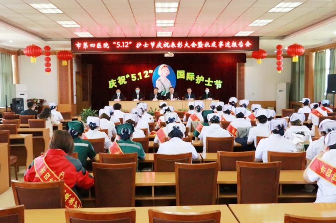 5月11日下午,淄博市第四人民医院举行“5.12”国际护士节庆祝表彰大会暨抗疫事迹报告会。会议由党总支书记路慎国同志主持,院领导班子成员、行政职能科室人员、护理人员代表100余人参加。