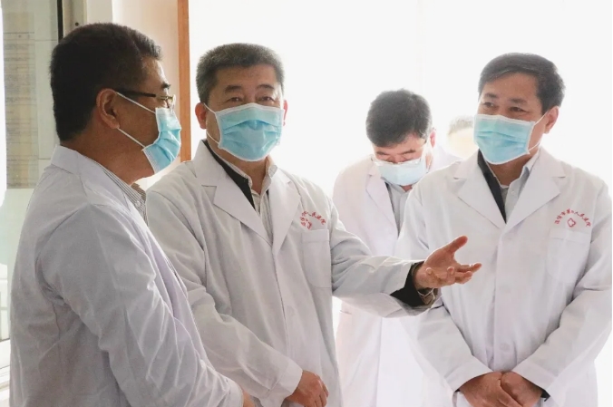 在肿瘤一科,毛立亭简要介绍了医院传染病和肿瘤两大专科业务开展情况。王可杰对医院在传染病和肿瘤专业取得的成绩给予充分肯定,对肿瘤科护理单元开展的化疗无呕吐病房、临终关怀等表示赞许。