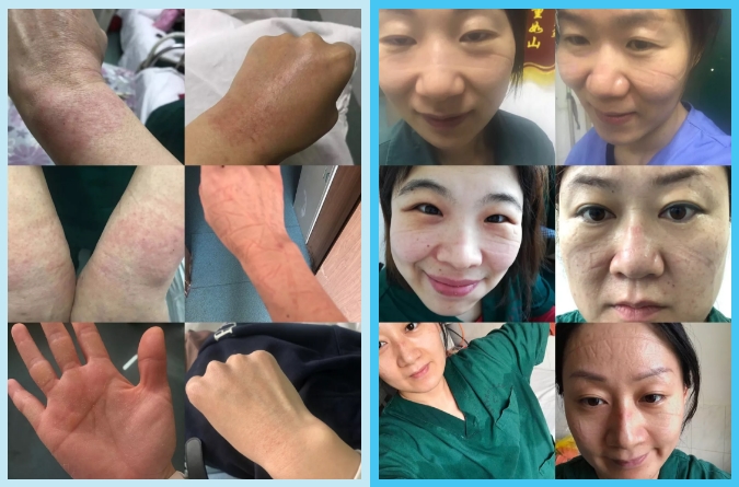 与死神决战,没有从天而降的英雄,只有挺身而出的白衣卫士!1月25日大年初一,应急感染病区收治第一例新冠肺炎病人,战疫正式打响!防护严密的护理人员严格落实诊疗护理措施,吸氧、雾化、输液、用药、采集血标本、大小便标本,测量生命体征、进行血氧饱和度监测……除了繁重的护理工作外,他们还为病人提水、订餐、送饭、处理大小便。不仅如此,护理人员还承担着应急感染病区4层楼(包括楼梯、办公区、清洁区、缓冲间、污染区)近5000平米所有的消毒隔离、卫生清洁工作,为了最大程度创造无菌环境,严格消毒流程,预防交叉感染,他们身穿防护服,每日反复数次对隔离区进行清洁消毒,工作量之大可想而知。一个班次下来,脱下防护服,浑身湿漉漉的,整个人就像从水里捞出来的一样,脸上手上全是深深的压痕,但没有一个人喊苦,没有一个人叫累,他们的眼里只有白天和黑夜,心里只装着病人的安危!