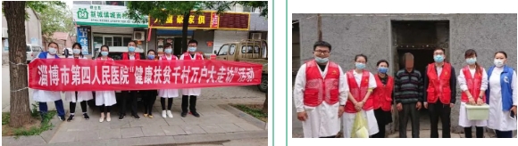 2020年5月14日、15日,淄博市第四人民医院两个小组分别前往新城镇定点服务村贫困户家中走访,专家们为他们进行健康扶贫知识宣教、健康问诊,测血压,给予用药指导,并送上装有体温计、口罩、健康知识手册等物品的健康扶贫爱心包和慰问品,大家结合工作实际,把不懂、不明白的问题,需要为帮扶群众解决的问题记录在案,而后认真梳理,获得精准扶贫第一手资料,使帮扶工作客观真实有效。