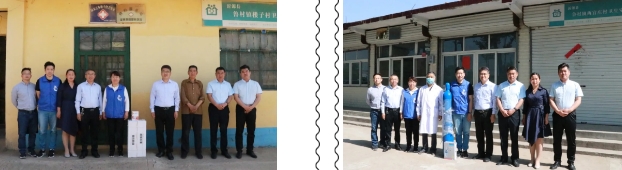 毛立亭院长一行人先后驱车来到徐春华医生被派驻的沂源县鲁村镇楼子村、葛星剑医生被派驻的沂源县鲁村镇西官庄村,毛立亭仔细询问了两名医生的工作开展情况和遇到的困难,查看了村卫生室的布局及配套设施。前期医院多次和两名村医沟通,特地为楼子村购置了电子血压计、神灯、医疗垃圾桶,西官庄村大氧气瓶、氧气流量表等物品。