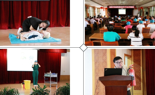 急诊科护士长刘健对单人徒手心肺复苏术、七步洗手法、穿脱防护服进行了讲解和培训,山东泰鲁安全技术有限公司田茂跃工程师讲解了灭火器材的应用。培训老师运用通俗易懂的语言,采用图文并茂的形式深入浅出地讲解了理论知识,随后进行了现场操作演示并进行分组练习。