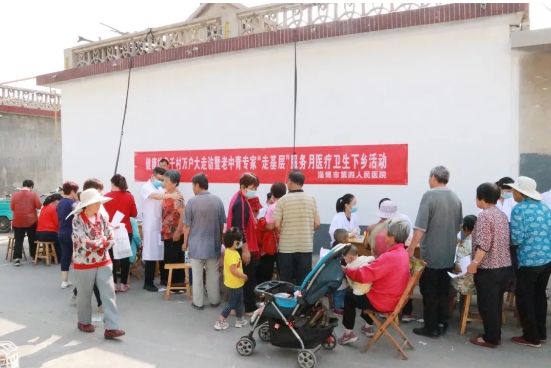 得知市级大医院的专家要来义诊,村里的大爷大妈们早早就来到村卫生室门前排起了长队,体检车刚一停稳,现场气氛立刻活跃起来。专家们立即整理物品,投入到工作中。