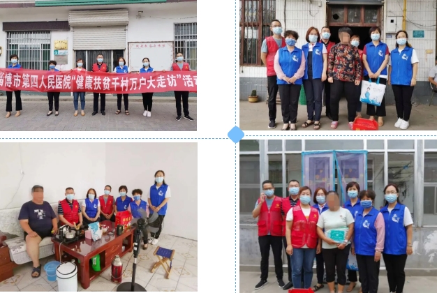 2020年6月23日、24日,淄博市第四人民医院四个小组分别前往新城镇定点服务村贫困户家中走访,专家们为他们进行健康扶贫知识宣教、健康问诊,测血压,给予用药指导,并送上装有体温计、口罩、健康知识手册等物品的健康扶贫爱心包和慰问品,大家结合工作实际,把不懂、不明白的问题,需要为帮扶群众解决的问题记录在案,而后认真梳理,获得精准扶贫第一手资料,使帮扶工作客观真实有效。